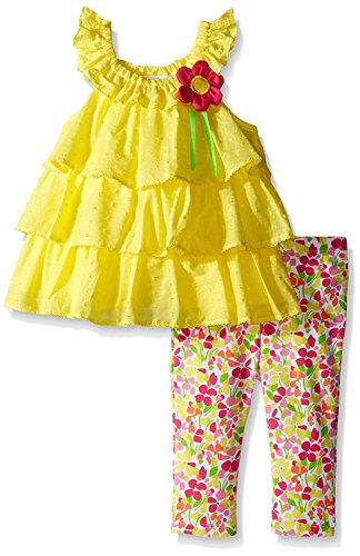 Kids Headquarters Little Girls' Yellow Woven Clip Dot Tunic and Printed Capri Yellow 6 [並行輸入品]