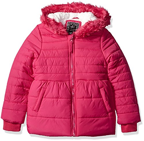 Ok Kids! Big Girls' Quilted Jacket with Faux Fur Trim on Hood Fuchsia 7/8 [並行輸入品]