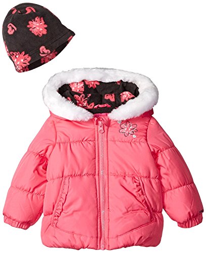 London Fog Baby Girls' Infant Heavyweight Puffer Jacket with Kangaroo Pocket Watermelon 24M [並行輸入品]