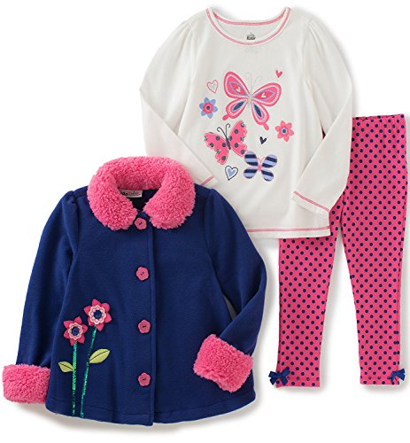 Kids Headquarters Little Girls 3 Pieces Sherpa Jacket With Matching Cuffs Pants Set Navy 5 [並行輸入品]