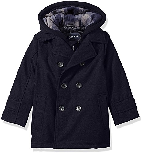 London Fog Little Boys' Toddler Double Breasted Faux Wool Hooded Coat Navy 2T [並行輸入品]