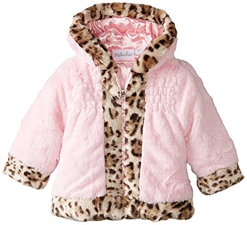 Pistachio Baby Girls' Faux Fur Jacket with Animal Print Trim Pink 24 Months [並行輸入品]
