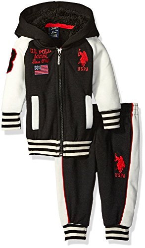 U.S. Polo Assn. Baby Boys' Fleece Hooded Jacket and Jog Pant Red 6-9 Months [並行輸入品]