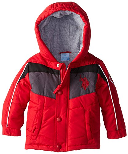 U.S. Polo Assn. Baby Boys' Chest Stripes Puffer Jacket with Hood Red 12 Months [並行輸入品]