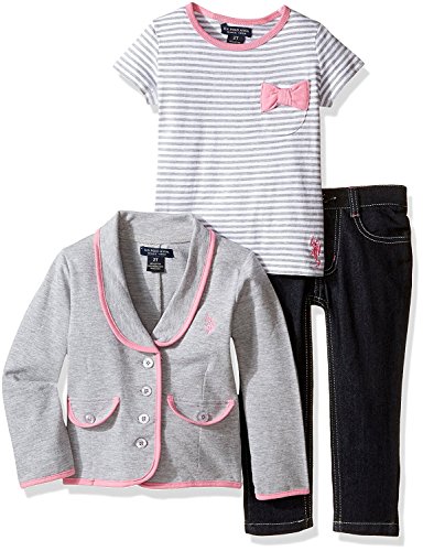 U.S. Polo Assn. Little Girls' French Terry Blazer Striped T-Shirt and Stretch Denim Jean Heather Grey 6 [並行輸入品]