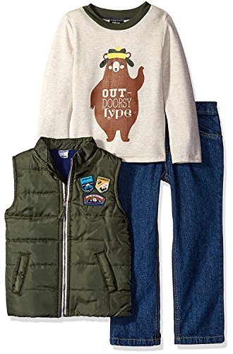 Boys Rock Little Boys' Toddler 3 Pc Puffy Vest Set Out-Doorsy Olive 2T [並行輸入品]