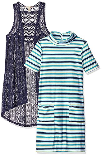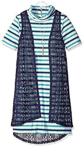 Speechless Big Girls' 2 Piece Dress and Vest Turquoise/Lime 8 [並行輸入品]