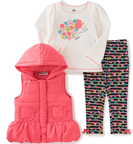 Kids Headquarters Little Girls' Toddler 3 Piece Puffer Vest Set with Hoody Coral 4T [並行輸入品]
