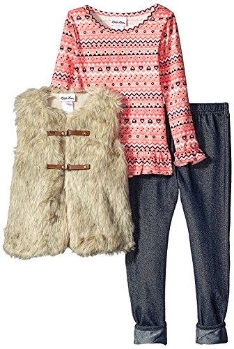 Little Lass Little Girls' Toddler 3 Piece Faux Fur Vest Set Ruffles Tan 4T [並行輸入品]