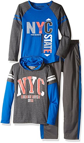 Team8 Little Boys' 3 Piece Hoodie Mesh Track Pant and Colorblock Raglan Graphic Shirt Set Grey Combo Large/6 [並行輸入品]
