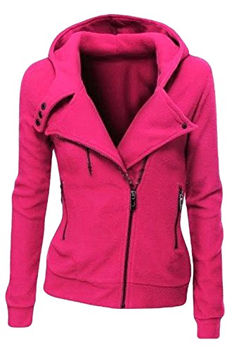 Kisscy Women's Winter Full Zip Up Fleeces Hooded Sweatshirt Hoody Jacket Rose Red XL [並行輸入品]