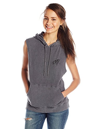 RVCA Junior's Sid Script Sleeveless Fleece Pullover Hoodie Black Large [並行輸入品]