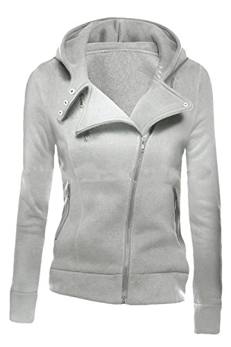 Kisscy Women's Full Zip Pockets Notch Collar Fleeces Sweatshirt Hoody Jacket Gray M [並行輸入品]