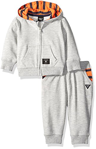 GUESS Baby Boys' Zip Front Hoodie and Fleece Pant Set Light Heather Grey 18M [並行輸入品]