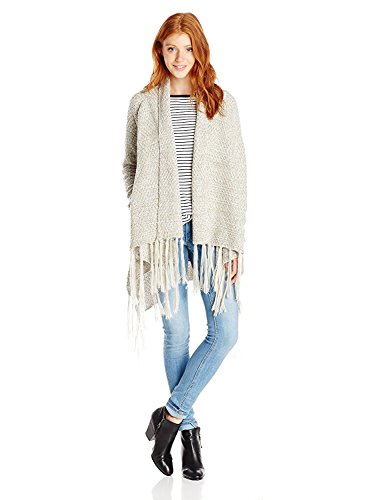 Papercrane Junior's Long Sleeve Knit Cardigan Sweater with Fringe Beige Medium [並行輸入品]