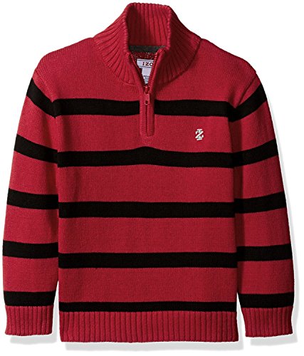 Izod Kids Big Boys Engineered Stripe 1/4 Zip Sweater Red Medium [並行輸入品]