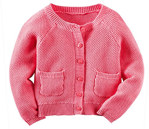 Carter's Girls Pink Cotton Knit Cardigan Sweater Cover Up (3T Dark Pink) [並行輸入品]