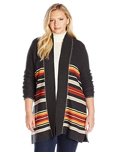 Pendleton Women's Plus Size Park Stripe Cardigan Sweater Charcoal Heather Multi 1X [並行輸入品]