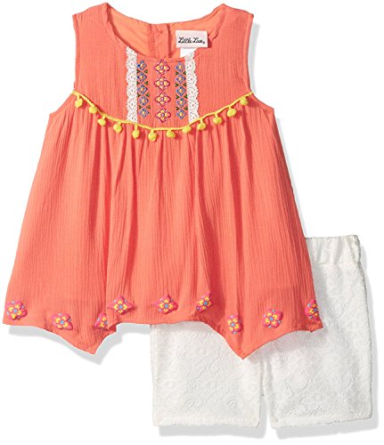 Little Lass Girls' 2 Pc Woven Short Set Fresh Salmon 4 [並行輸入品]
