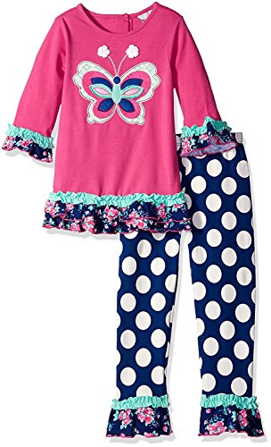 Rare Editions Little Girls' Butterfly Applique Legging Set Fuchsia/Navy 5 [並行輸入品]