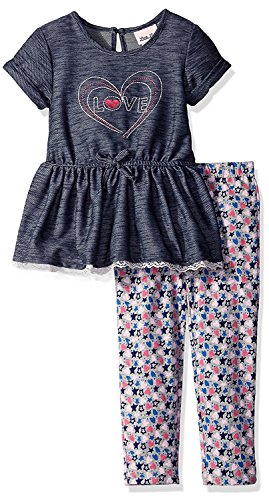 Little Lass Little Girls' 2 Piece Legging Set Hearts and Stars Indigo 5 [並行輸入品]
