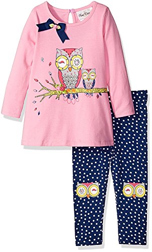 Rare Editions Little Girls' Owl Applique Legging Set Pink/Navy 6X [並行輸入品]