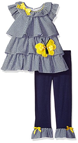 Rare Editions Little Girls' Toddler Butterfly Applique Seersucker Top to Legging Set Navy/White/Yellow 2T [並行輸入品]