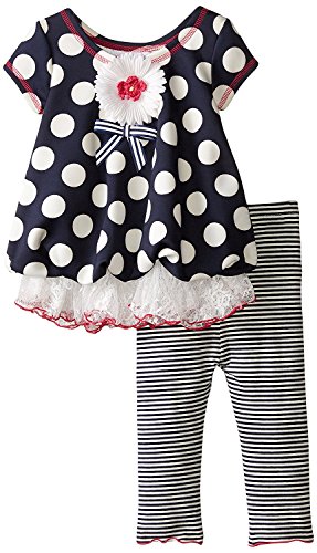 Bonnie Baby Baby Girls' Scuba Dot To Stripe Pant Legging Set Navy 24 Months [並行輸入品]