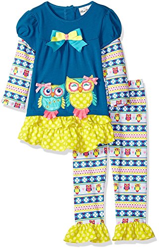Rare Editions Little Girls' Owl Applique Legging Set with Fairisle Print Sleeves Teal/Multi 6 [並行輸入品]