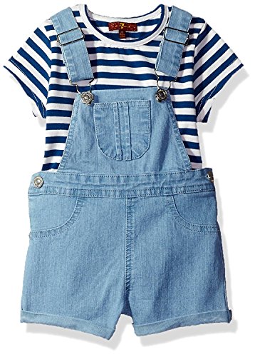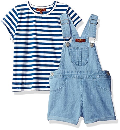 7 For All Mankind Toddler Girls' 2 Piece Striped T-Shirt and Denim Shortall Set Night 3T [並行輸入品]