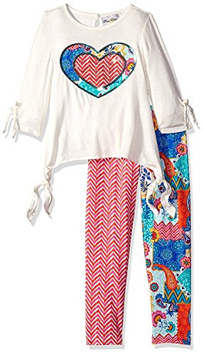 Rare Editions Little Girls' 2 Print Legging Set with Sequined Heart Applique Ivory 5 [並行輸入品]