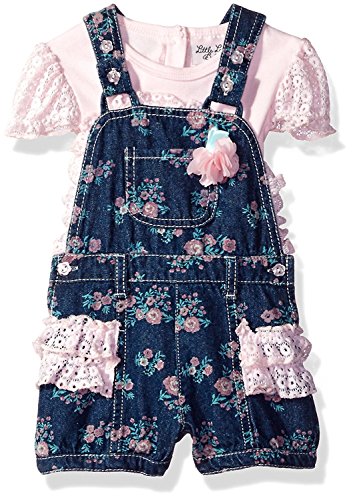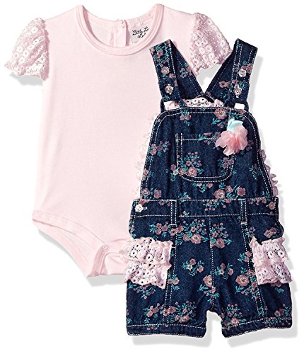 Little Lass Baby Girls' 2 Pc Printed Denim Shortall Set Blushing Bride 6M [並行輸入品]