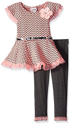 Little Lass Little Girls' 2 Piece Legging Set Chevron Tulle Coral 4 [並行輸入品]