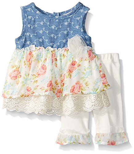 Little Lass Baby Girls' 2 Pc Capri Set Rose Chiffon Chambray 12M [並行輸入品]