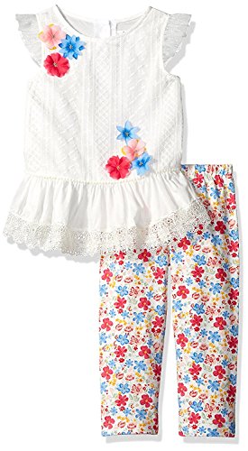 Rare Editions Little Girls' Embroidered Top to Floral Legging Set Ivory/Multi 4 [並行輸入品]