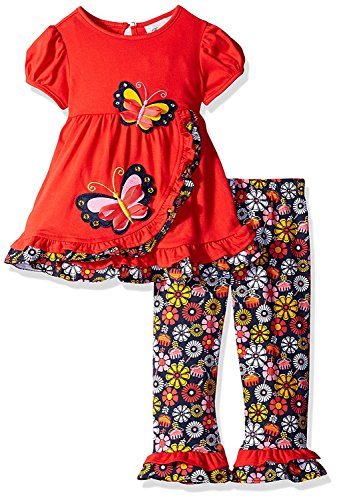 Rare Editions Little Girls' Navy Flower Print W Butterfly Applique Legging Set Coral 4 [並行輸入品]