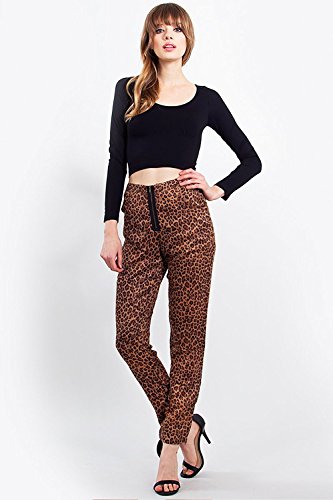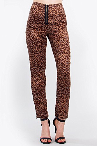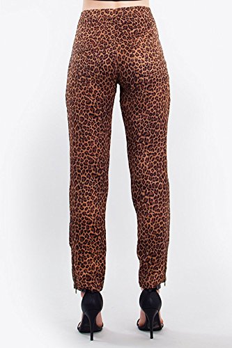 Brown Animal Print Skinny Trousers with Zipper detail on the pant hem. (M) [並行輸入品]