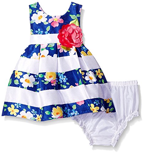 Sweet Heart Rose Baby Striped Floral Pleated Shantung Dress with Diaper Cover Blue/Multi 18 Months [並行輸入品]