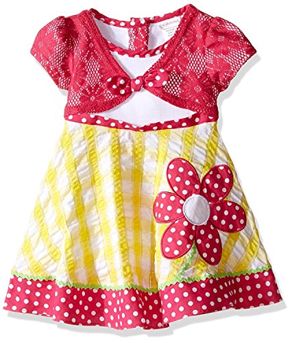 Youngland Little Girls' Knit to Seersucker Dress with Mock Pink Cardigan Yellow/Multi 5 [並行輸入品]