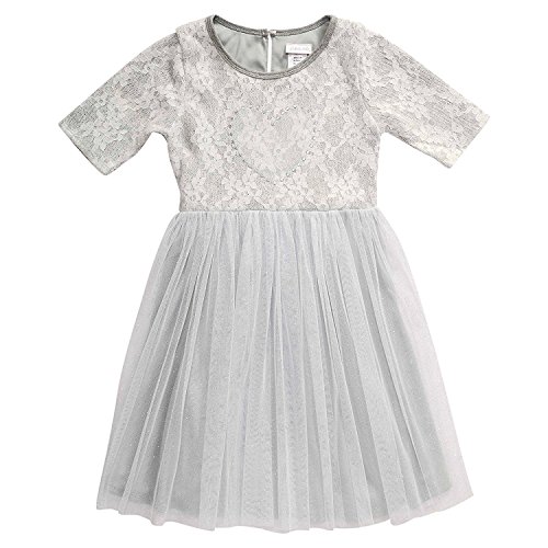 Youngland Little Girls' Short Sleeve Lace to Mesh Dress with Embossed Heart Applique Grey/White 2 [並行輸入品]