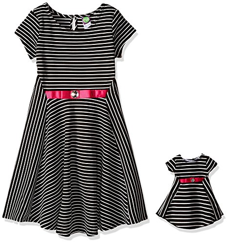 Dollie & Me Little Girls' Short Sleeve Striped Knit Dress with Pink Bow Detail Black/White 6 [並行輸入品]