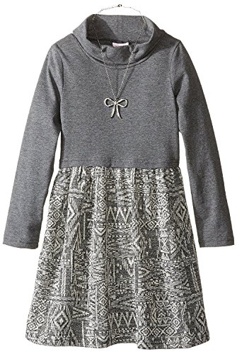 Youngland Little Girls' Knit Printed Cowl Neck Dress with Removable Necklace Grey/White 6X [並行輸入品]
