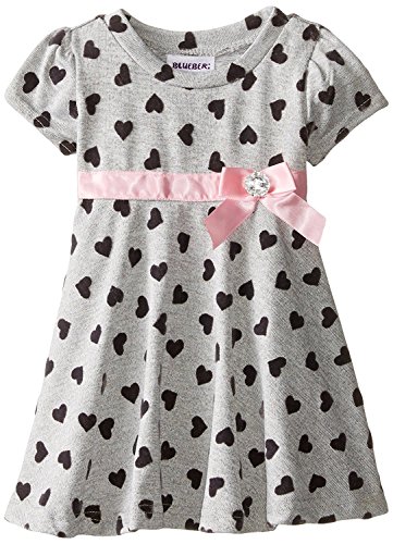Blueberi Boulevard Baby Girls' Flocked Heart Knit Dress Grey 12 Months [並行輸入品]