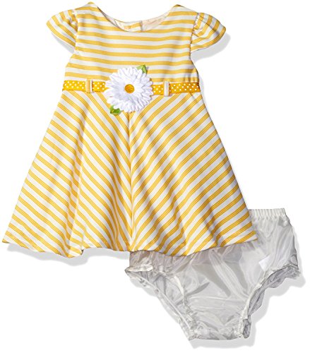 Sweet Heart Rose Baby Girls' Striped Knit Short Sleeve Dress with Daisy Trim Yellow/White 12M [並行輸入品]