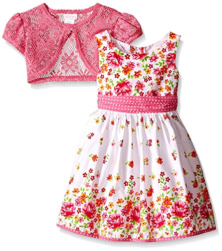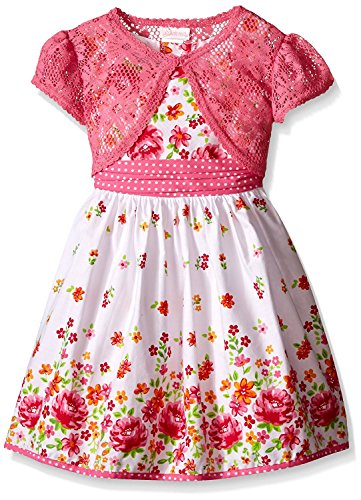 Youngland Little Girls' Toddler Shantung Floral Print Dress and Crochet Cardigan Multi 4T [並行輸入品]
