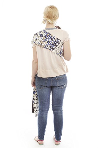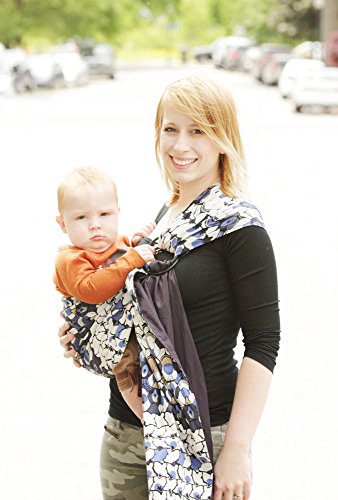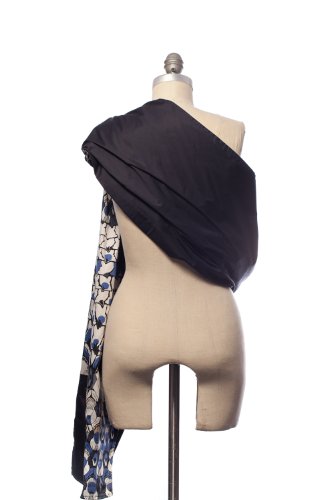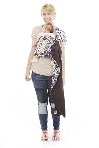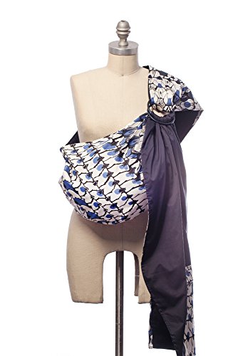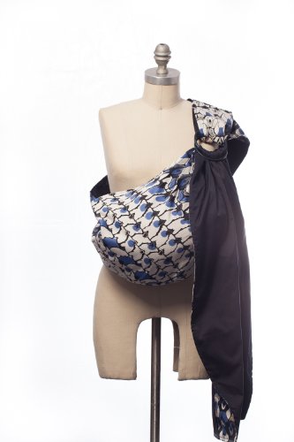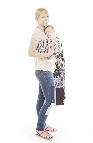 This black, white, and blue, all-over peacock inspired print is a must have! With animal prints trending, this carrier will be the most beautiful on the playground, or on the street. Reversible to a true navy, both fabrics are made of soft, luxurious 100% cotton. A patterned zip pocket completes the look, which can hold your keys, wallet or a few extra diapers.