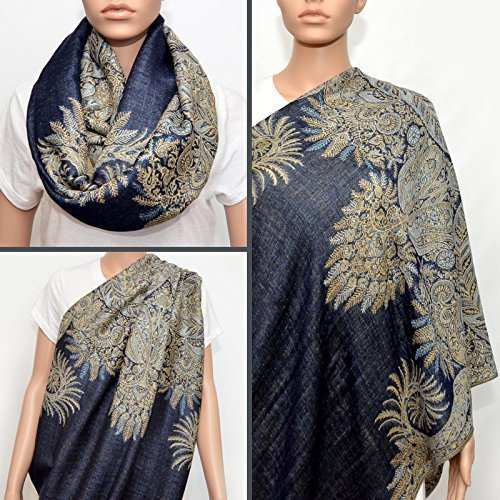 Nursing Cover - Nursing Scarf - Nursing Infinity Scarf - Breastfeeding Cover (Navy Blue with Floral Golden Beige Pattern) by Rodaruus