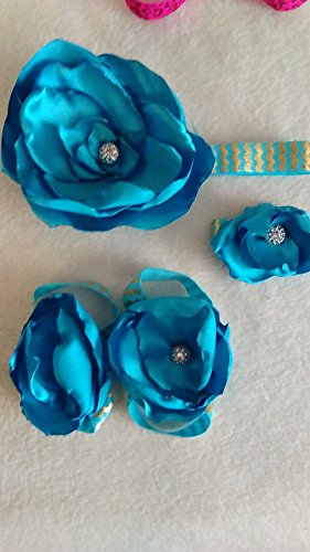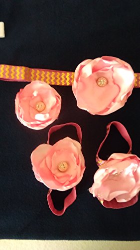 ROEWELL赤ちゃんの&の5セットの女の子のヘッドバンド/ヘアリボンと裸足サンダル花