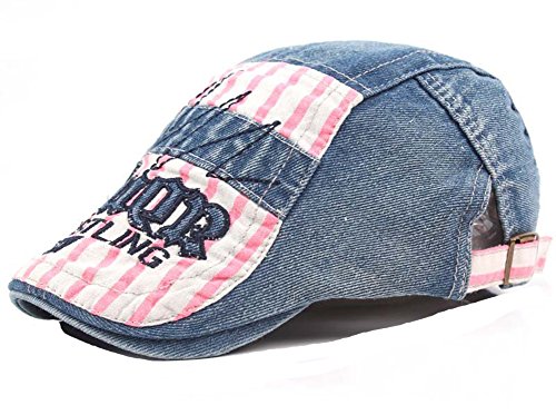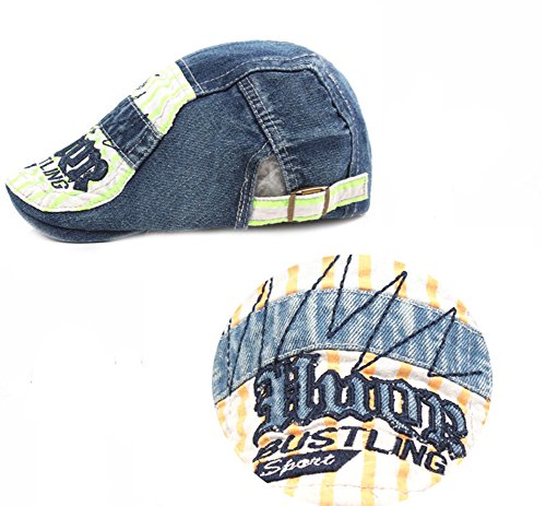 Roffatide 子供 刺繍 ハンチング 帽子 ベレー帽 男の子 女の子 春夏 アウトドア 紫外線対策 日よけ帽子 ブルー B