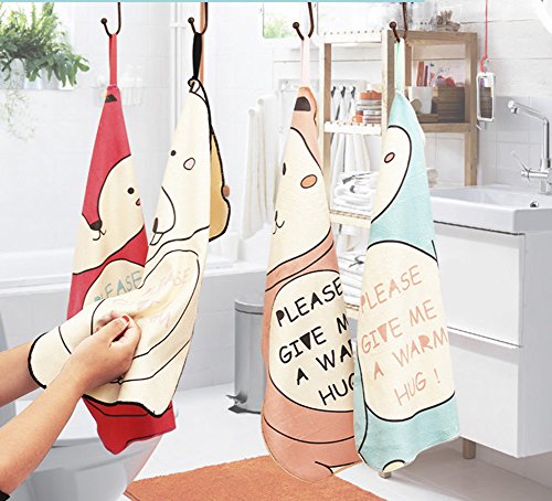 rohern Ultra Soft KidsバスWashcloths、コットンCartoon Faceハンドタオル、2パック、7 x 17.7 " レッド